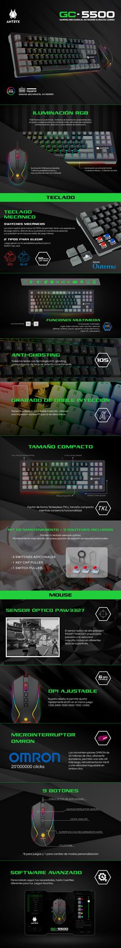 Kit Gamer Teclado y Mouse Antryx GC-5500, Mecanico, Usb, Blue Switrch, RGB, BK.